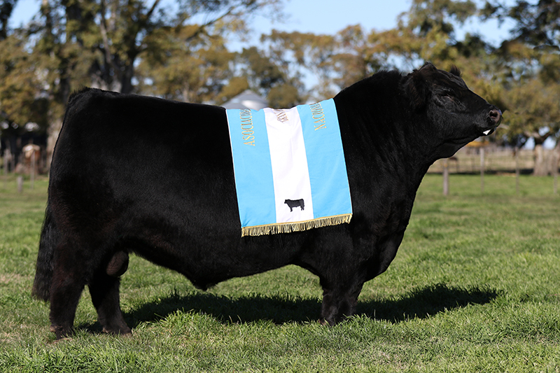 GRAN CAMPEÓN NACIONAL 2019. Importante padre con toda la clase, consistencia y calidad racial que garantiza Cabaña Tres Marías. Hermano entero de Don Emilio, Bi Gran Campeón de Palermo y de Don Raul, padre de gran producción en TM. Un toro muy correcto, de excelente estructura, que impacta por su volumen, ancho y profundidad de costilla, sumado a un excelente desplazamiento. En sus DEPs se destacan los índices para peso al destete y final, circunferencia escrotal, engrasamiento y marmoleo, asegurando gran precocidad y crecimiento combinado con gran calidad carnicera. Sus crías muestran gran corrección y calidad racial, ideal para lograr buenas madres de solidas estructuras y buen hueso, altos índices de destete, hacer novillos pesados o reproductores de bueno expresión y mucho volumen.