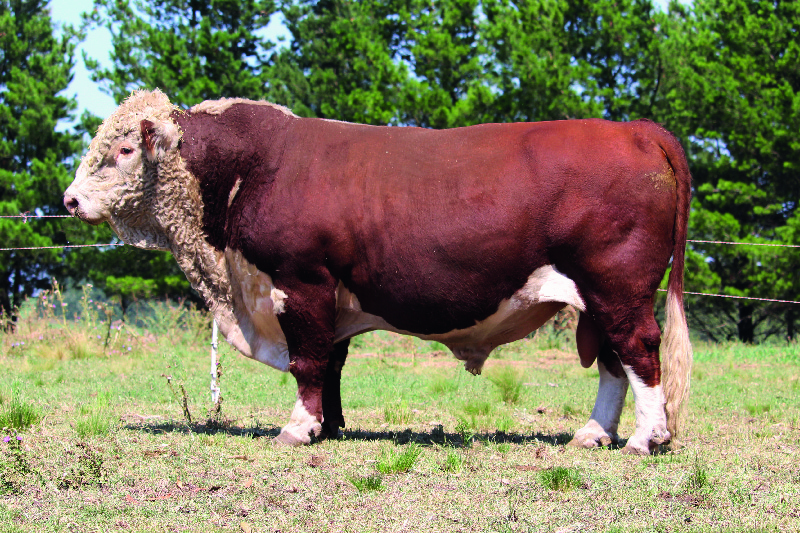 Padre de producción notable y homogénea en muchos rodeos que se suma a nuestro catálogo. Toro largo, ancho y de buena profundidad de costilla, en un tamaño bien moderado, con la camiseta Hereford clásica. Hijo de Átomo en la 818, que a su vez es hija de Lidio, sumando así todo el respaldo genético de San Edmundo y Lonco Piré. Restauración conjuga varias características hoy muy buscadas en la raza que son facilidad de parto, bajos requerimientos y líneas maternales sólidas con buena leche sin aumentar el tamaño de las madres. Sin dudas una excelente opción a la hora de inseminar vaquillonas precoces o para masificar en rodeos donde se necesite aumentar la eficiencia y adaptación a ambientes complicados, mejorando también características raciales.